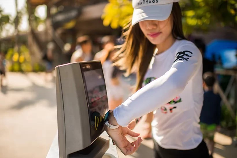 門票是1200泰銖,你也可以支付1450泰銖購買全套票,非常划算,拿到1個無線識別手環,可以使用儲物櫃、毛巾,還有全天的自助餐,工作人員非常友好。