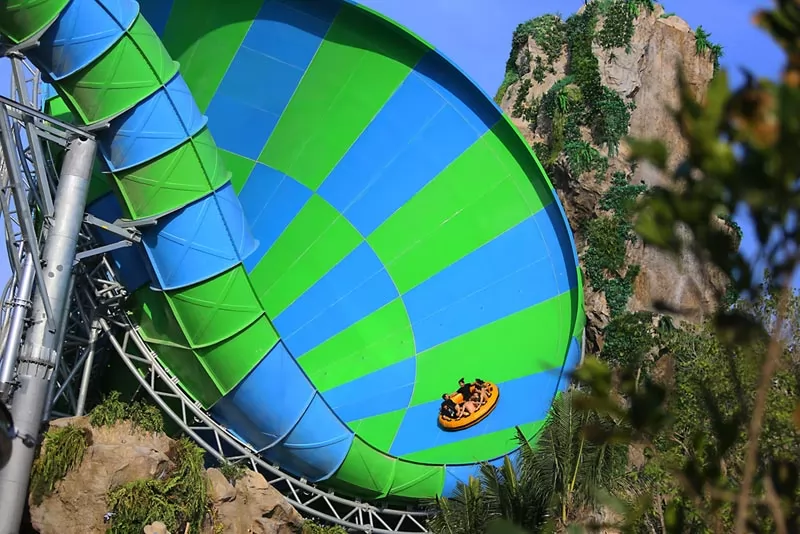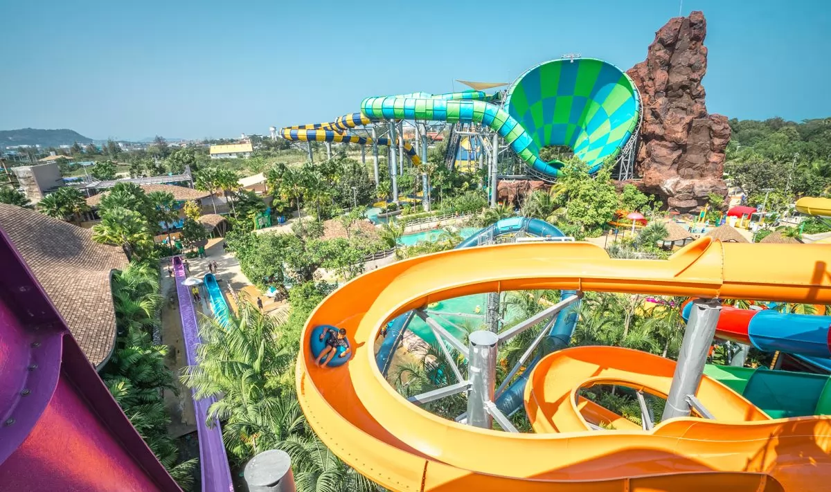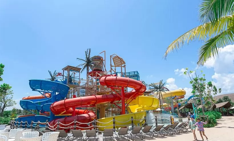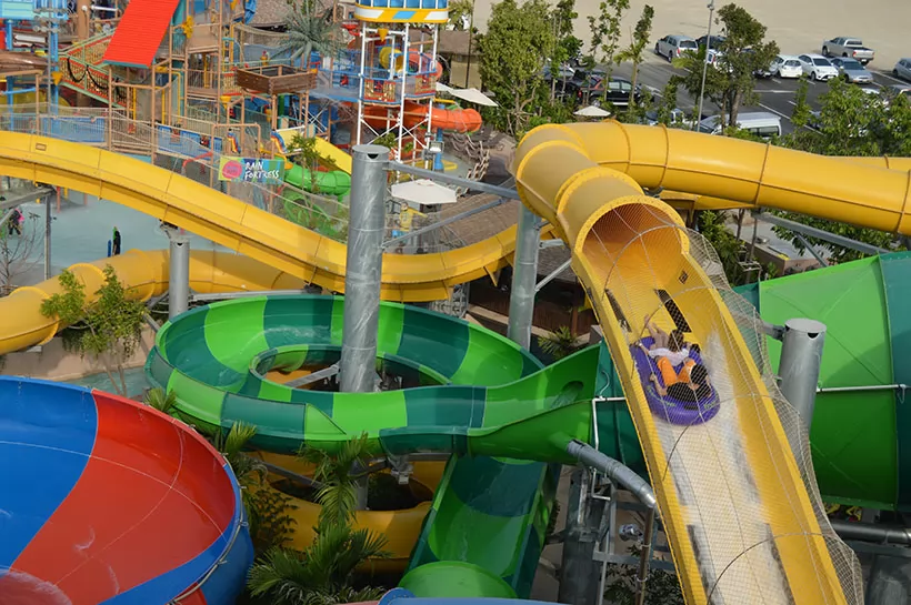 水上樂園分水上叢林區(Jungle Zone)及冒險挑戰區(Adventure Zone)兩大主題,總共有21項水上活動,一些坡道驚險曲折,弧度很大,世界之最的滑道也在其中,像是最刺激的滑梯—Abyss,最大的滑梯—Aqualoop。