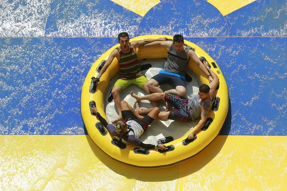 Inner-Tube By True Move, 1或兩人坐在橡皮艇溜滑而下。