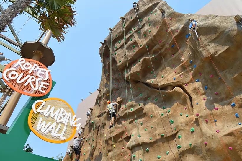 冒險挑戰區有攀岩、衝浪等,自問身手不凡的朋友不妨試試。