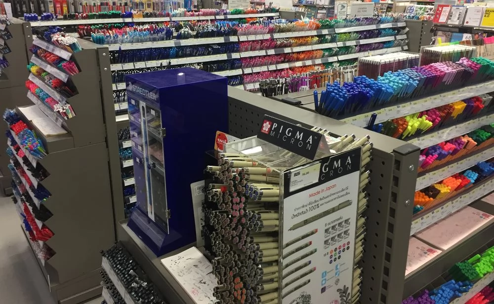 這裡的原子筆,就像服裝一樣,不斷有新款式和功能的商品推出,過一段時間就很難找到之前的款式,最重要的還是它的價格,1枝原子筆大約在20泰銖上下,尤其是0.5的細筆,實用又好寫!