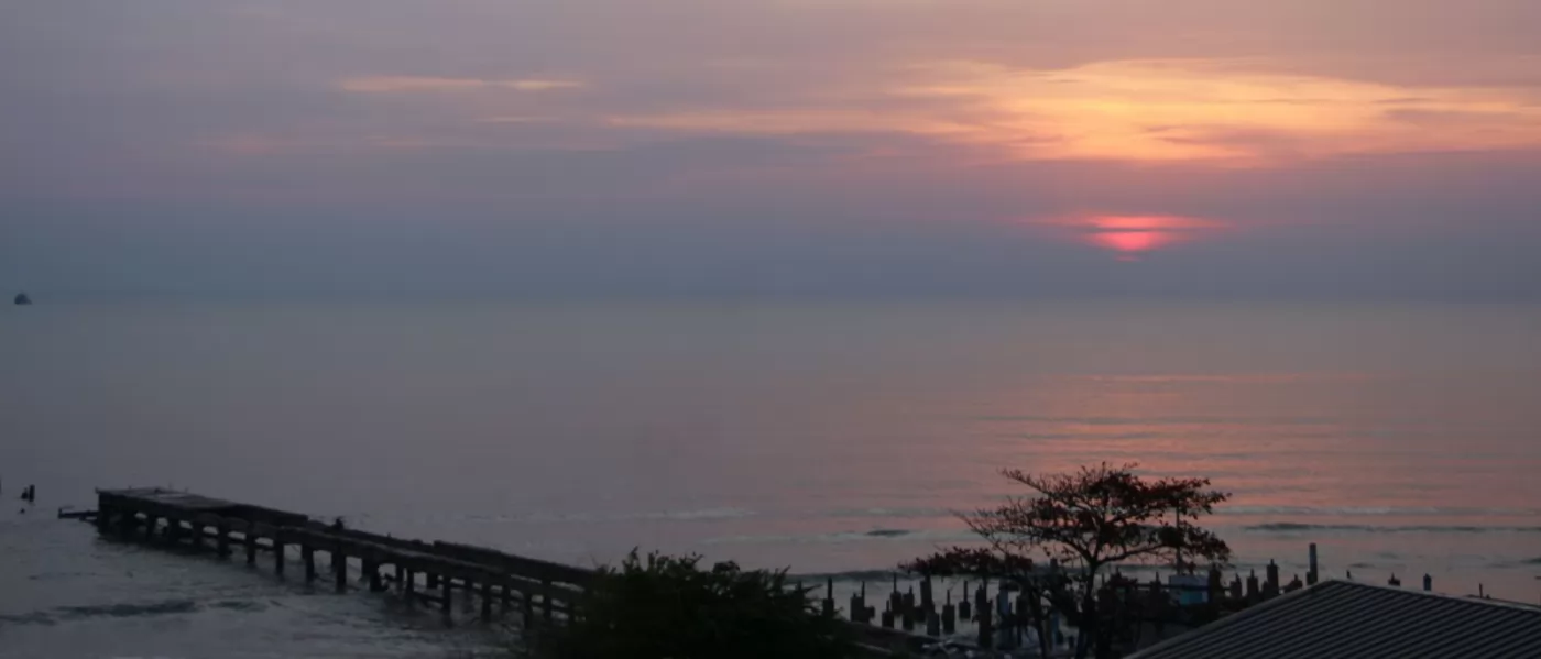 因為所在位置,泰國西岸的華欣能觀賞到日出(如果好天氣的話),有的飯店即使躺在床上、只要打開窗戶,就能看到日出;如果沒有也可以步行到海灘,找個好位置,看火紅的太陽穿透陰暗的雲層露出臉來,然後一步一步高升,它的餘輝開始慢慢四散出來,愈升愈高,天空愈是金黃明亮。