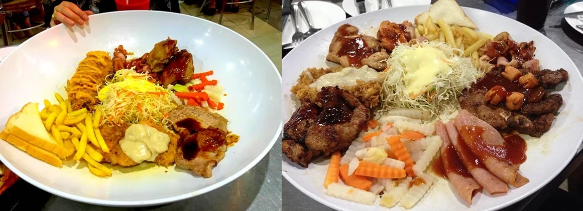 餐點以西式為主,麵包、沙拉、薯條和炸雞、牛排,組合出不同的套餐,份量可以從個人、4人、7人到最大9人不等,價格也從79泰銖,節節升到最高的779泰銖,吸引很多大食客前來挑戰,曾有泰國第5電視台前來採訪。