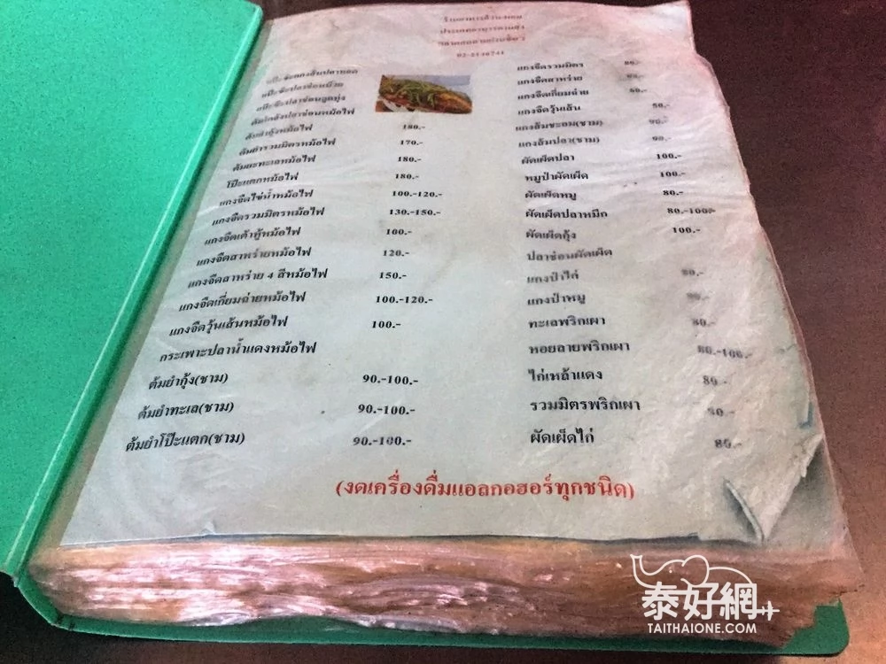 這裡以大份量為賣點,連菜單也是厚厚一疊,際了泰文之外,也針對外籍觀光客,提供有食物的圖片,可以看圖來點餐。