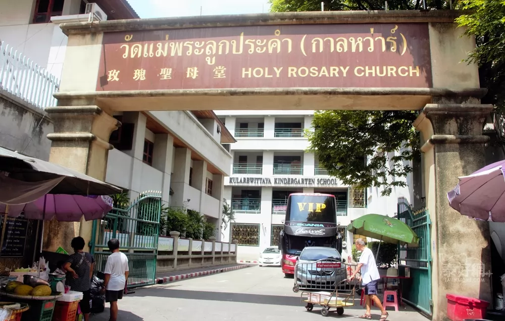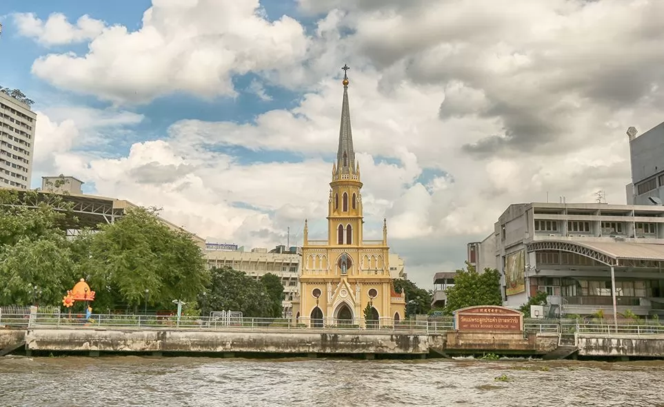 Holy Rosary Church ,วัดแม่พระลูกประคำ(กาลหว่าร์),葡萄牙傳教士離開緬甸統治的大城府後,在1786年(曼谷建都4年後),從拉瑪一世王手上得到湄南河畔現今教堂旁一塊空地,1787年完成這座哥德式教堂,如今是曼谷最古老的教堂之一。