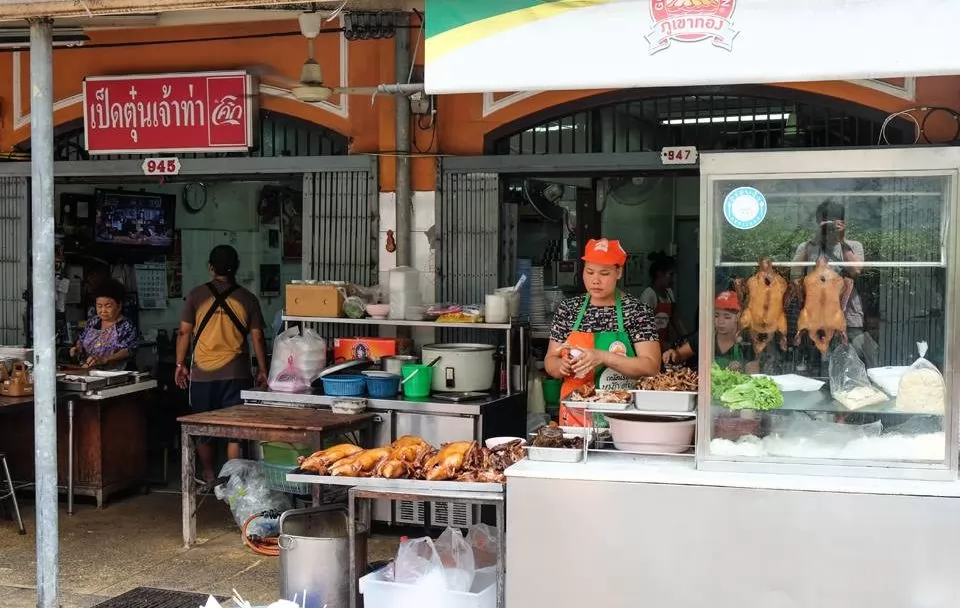 回到Soi Wanit2巷口,斜對面有家美味的鴨肉粿條店(เป็ดตุ๋น เจ้าท่า),已經陪伴小市場幾十年了!可以進去品嚐,鴨肉鮮嫩,絕對不讓你失望。要提醒的是,店每周日休息,其他時間9:00-15:00營業。