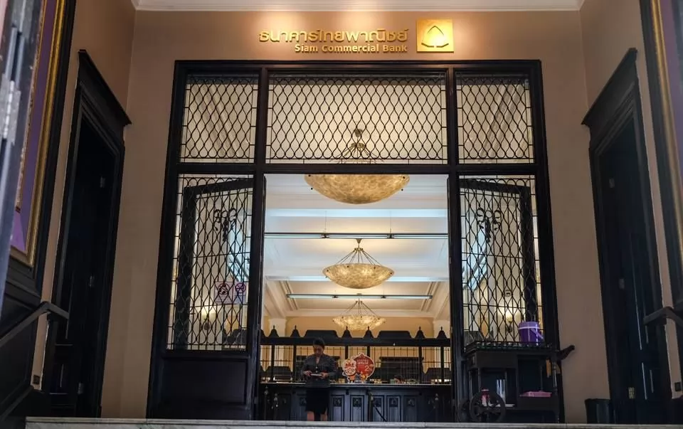 往回走,來到暹羅銀行,這座3層樓、西式風格的銀行建在111年前(1907年),至今仍在使用,為Talad Noi分行(8:30-15:30),可以入內參觀,內部裝飾典雅 ,在1982年還榮獲傑出建築保護獎。