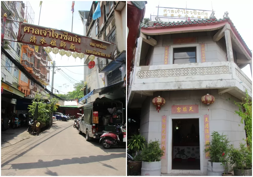 從蘇恒泰巷子再往前走的巷口,往左轉,走到底就是清水祖師廟(Chao Zhou Shi Kong/ศาลเจ้าโจวซือกง),移民過來的福建鄉親所建的順興宮(1804年)。