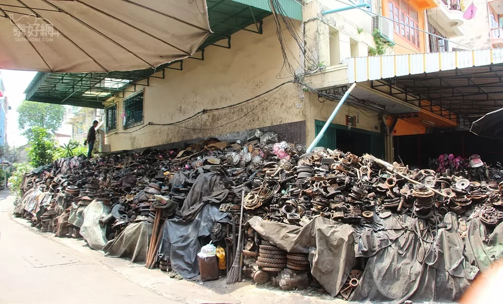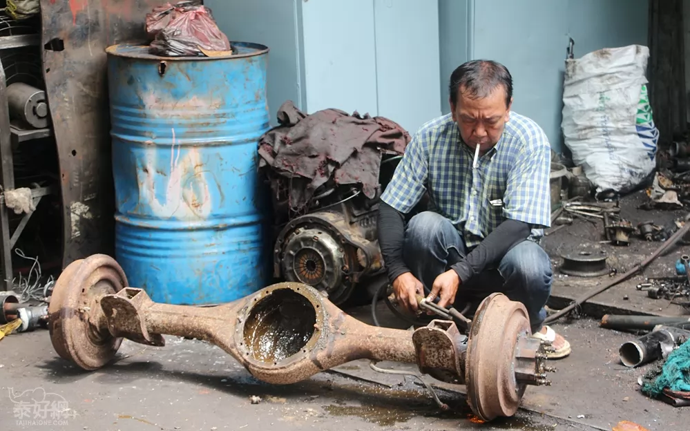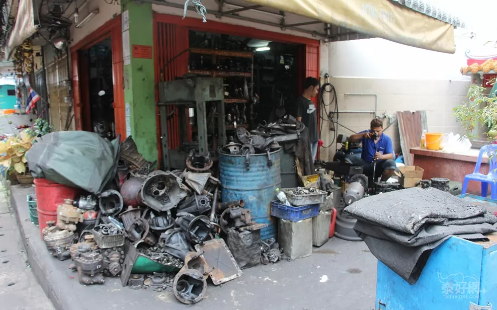 在Soi Wanit2的路上,隨處可見堆積如山各種機械拆卸下的配件,滿地的油污,別小看這些廢棄物,可是擁有很大的商機,也是華人用勤奮、智慧賺錢的最佳寫照。