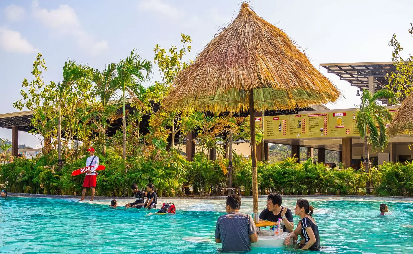 1個巨大的雙倍衝浪池,還可以在擁有噴泉和泡沫的慵懶漂流河中來一段神秘洞穴的探險,度過歡樂的一天。只是不太方便之處就是設施與設施之間距離比較遠。