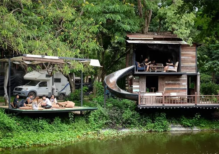 清邁用木頭搭建的咖啡店並不少,如此特別的滑梯木屋,也不得不讓人佩服設計師的童心和巧思。自然休閒的感覺,難怪本地人亦慕名而至。