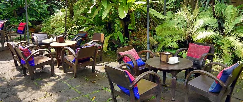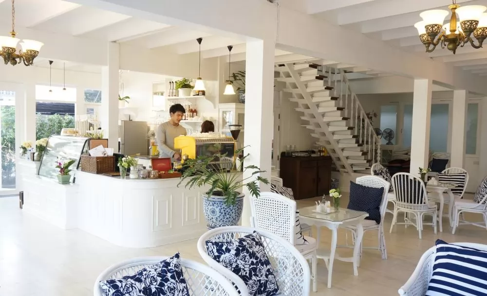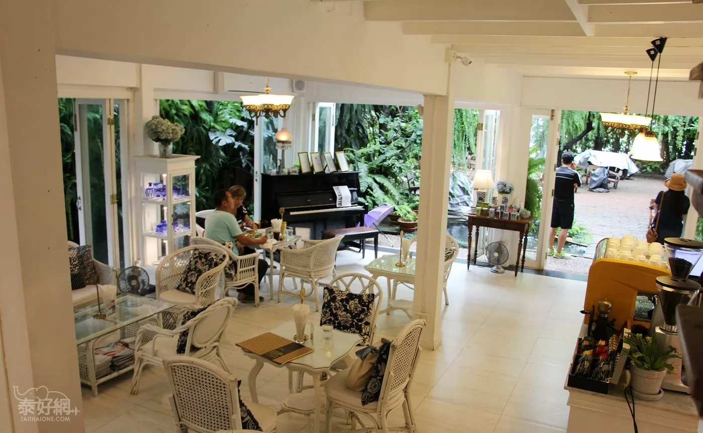 下午時分,顧客還不多,可以自由選擇屋外樹蔭遮蔽、充滿熱帶風情的座位,或者到室內二樓陽台旁,啜飲咖啡,欣賞優美風景,讓微風吹上臉龐。
