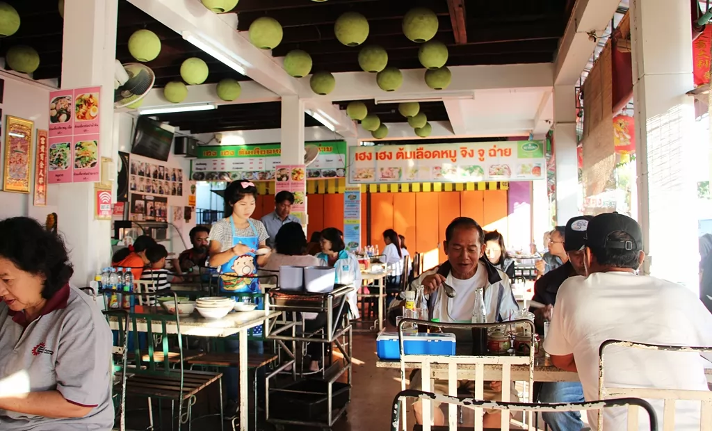 泰北南邦也聚集不少華人,想吃美味的早餐,泰客推薦到ต้มเลือดหมูจิงจูฉ่าย(TOM LUEAT MU CHING CHU CHAI)這家老華人店,可以吃到中式、泰式經典早餐,是南邦高人氣的早餐店。