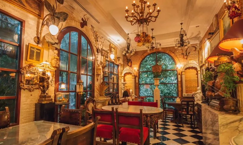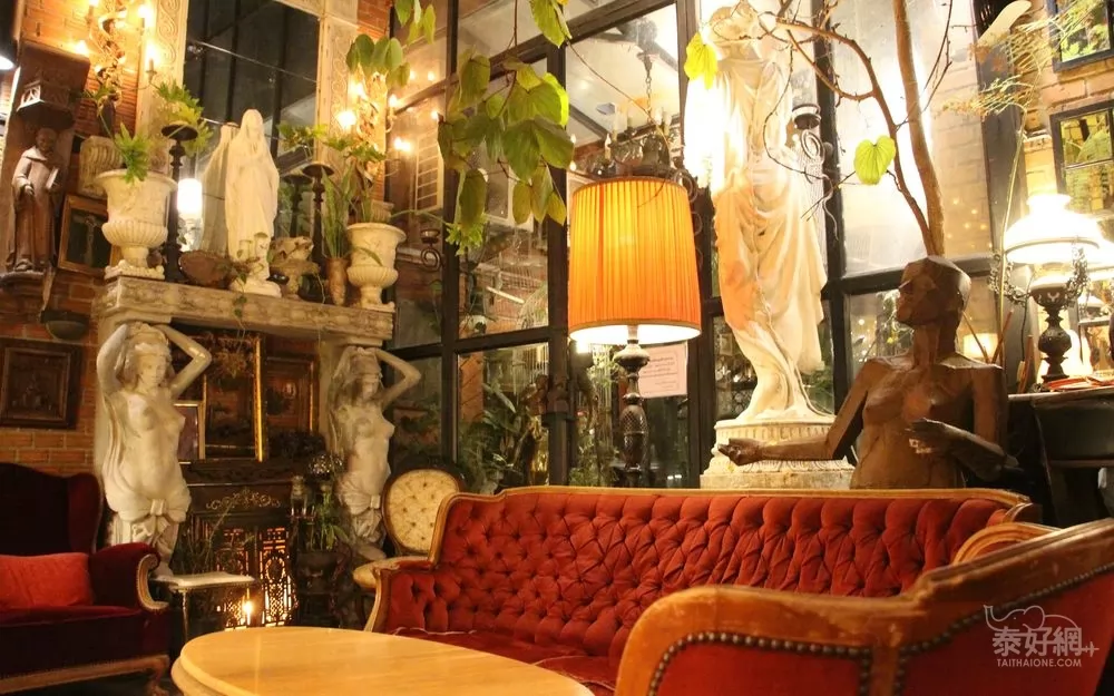脫鞋進入店內,絕對會為之驚豔,像真的來到歐洲文藝復古的城堡,不管是門口裝飾,還是店裡的佈置,從地板到天花板,窗戶和牆壁都裝飾著古董,隨處可見的雕塑,精緻的沙發,復古的吊燈,入眼所及,無一不是極具歐式風情的陳設。