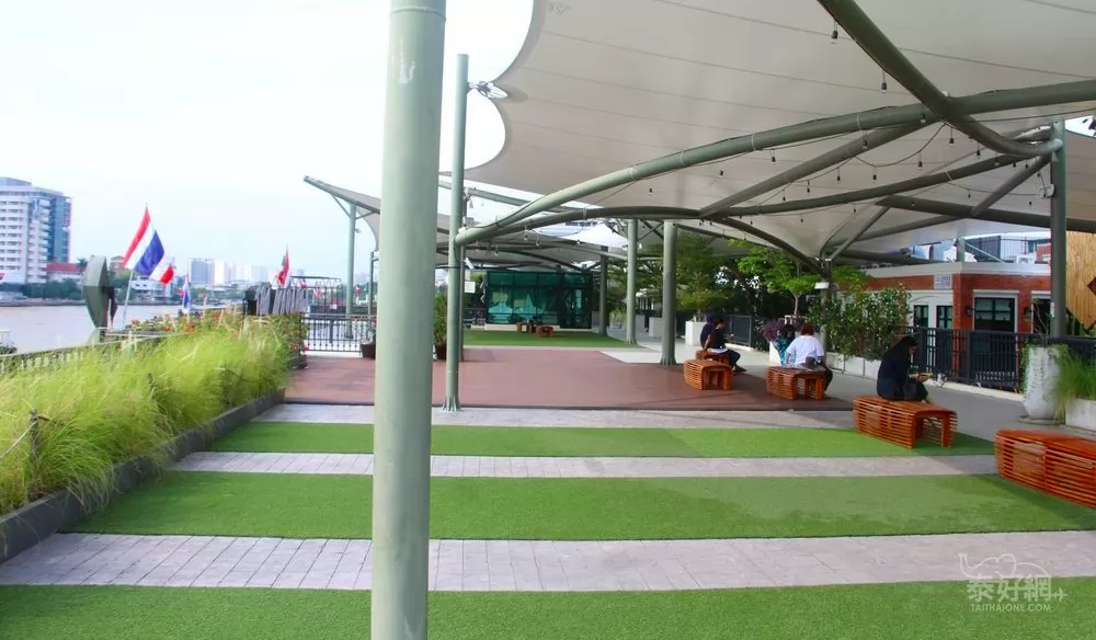 最讓人印象深刻的,是河岸旁的整體規劃,半開放式的空間,佈置了綠草與農場牧草坐位,並與碼頭站點融合一體。可成為週末市集展場、表演舞臺、以及手創Workshop,甚至Live Band的小型演唱會;入夜後也能變身露天Beer Garden,坐在牧草上喝著啤酒,非常泰式,非常符合文青主題。