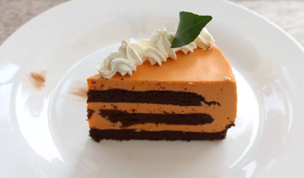 泰奶穆斯蛋糕(Thai Tea Flourless Mousse Cake)1塊110銖,風味特別。