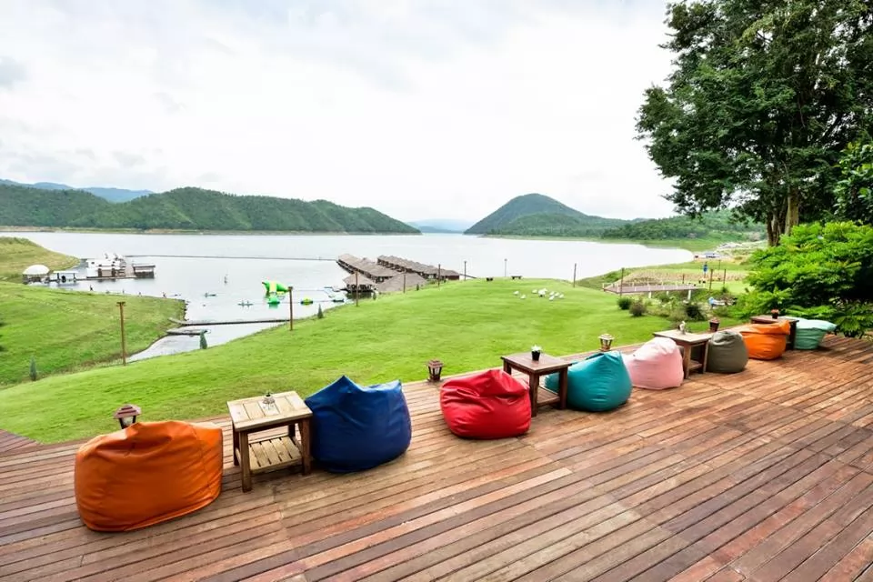在岸邊擁有一大片草地提供露營場地,還有看湖發呆的懶骨頭休憩區。