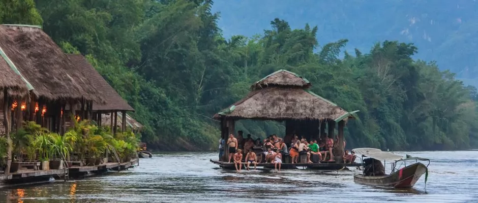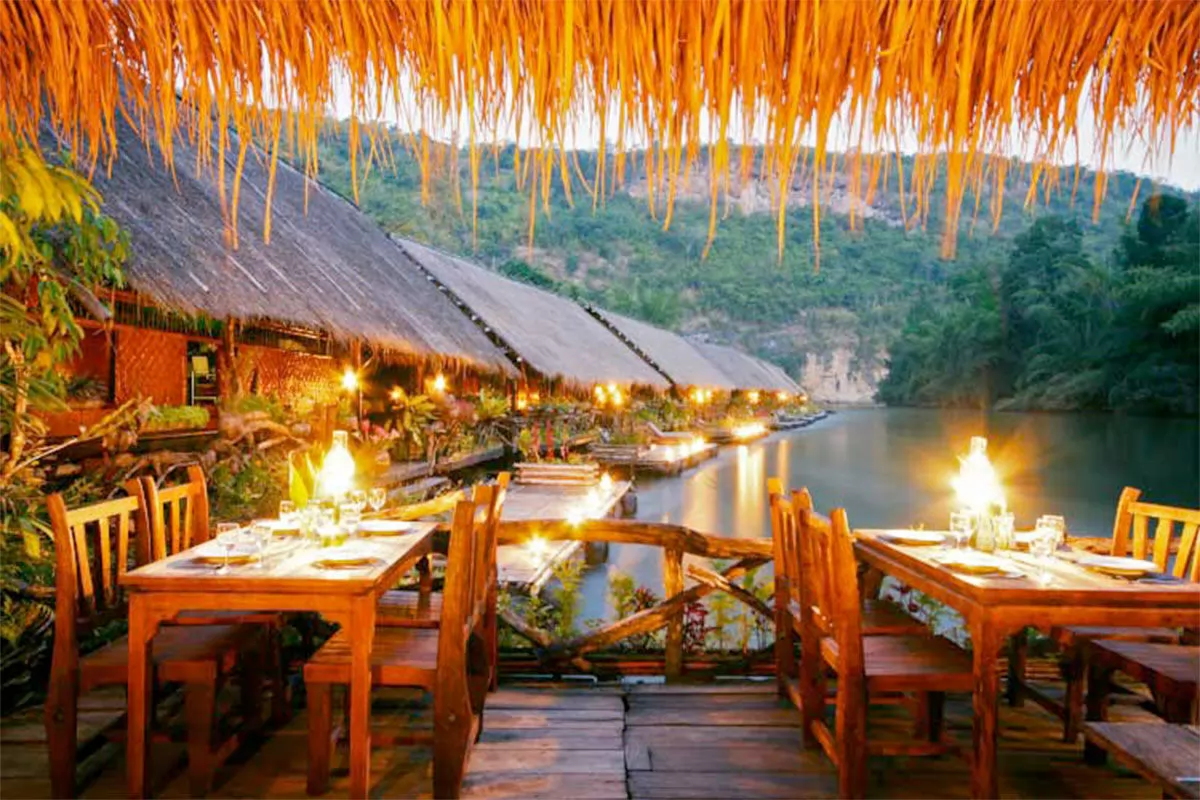 River Kwai Jungle Rafts(เดอะ ริเวอร์แคว จังเกิล ราฟท์)度假村位於奎內河邊上,被大自然包圍著,有著高大的樹木,河流和山。