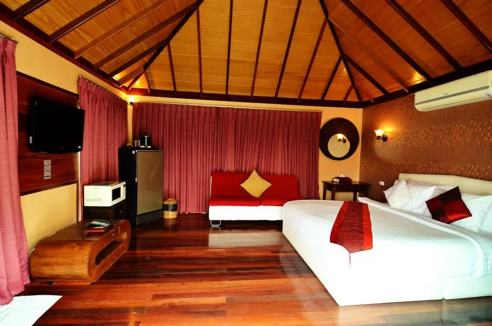 Ruknam Resort(รักน้ำรีสอร์ท)酒店建於水上的獨棟聯排木屋錯落有致,周圍小山丘環抱。