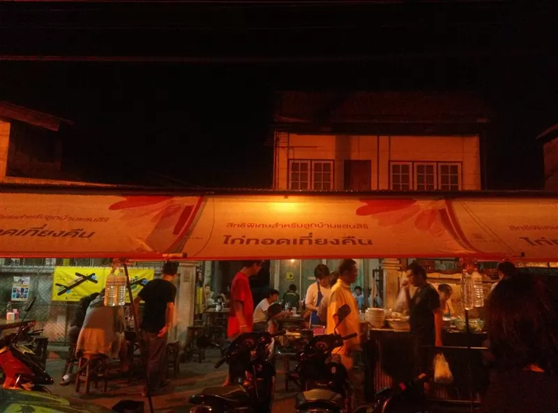 清邁三更半夜的肚子餓了,又不想吃便利商店怎麼辦?象哥介紹1家深夜炸雞(ไก่ทอดเที่ยงคืน),最地道、最多當地人去的炸雞店!