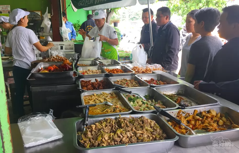 店裡除了炸豬排,還賣很多其他的吃食(20樣菜,都是道地的泰菜),價錢都很便宜,1盤菜飯(3樣菜)不超過50銖,店裡提供免費的飲水。