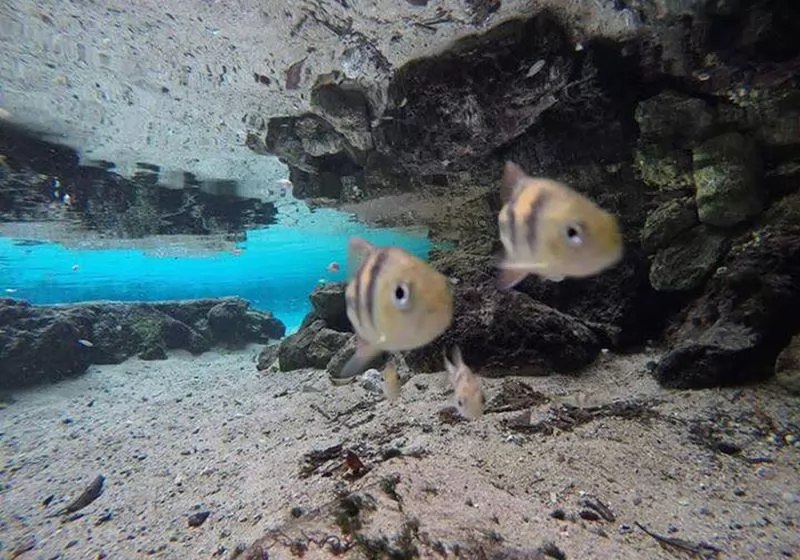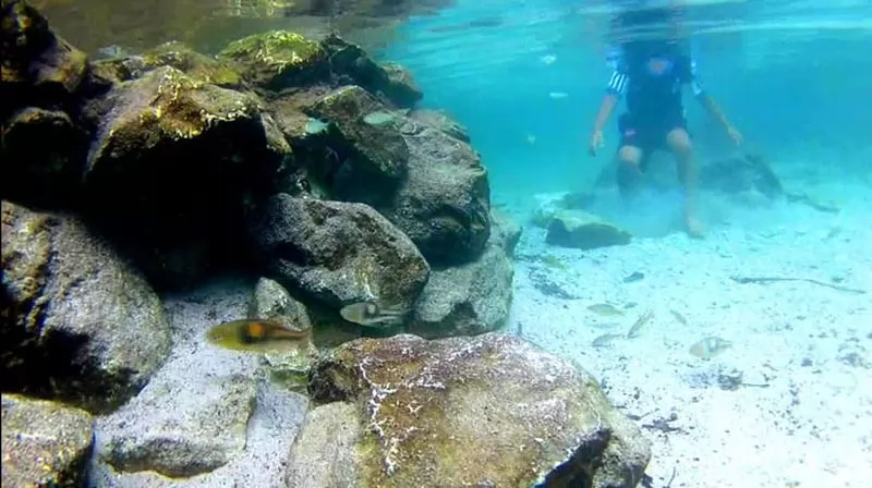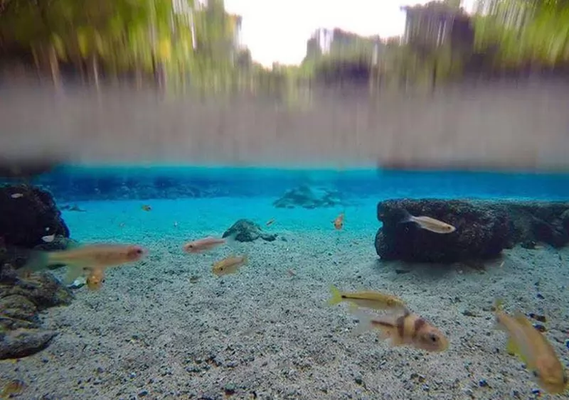 為了觀賞到水面下的美景和冒出清澈的水,遊客們還可以下水玩。
