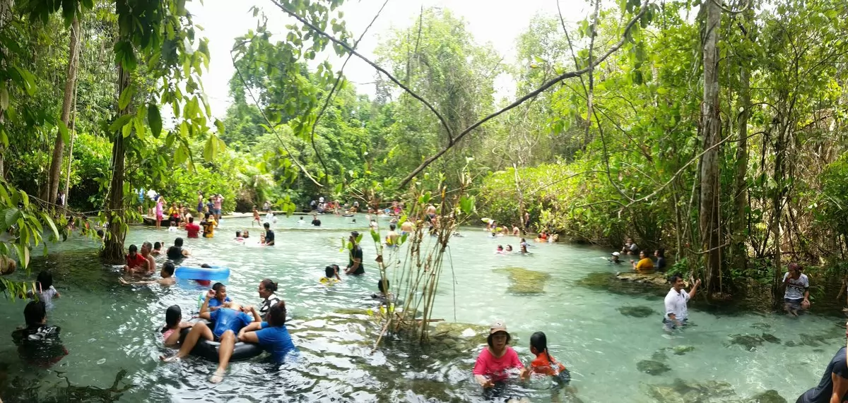 這是素叻府Khiri Rat Nikhom縣(อำเภอคีรีรัฐนิคม)的Baan Nam Raad(บ้านน้ำราด)森林山腳處冒出的水,形成的水池,於是村民們就把它建設為旅遊景點,算是素叻府十分自然且豐富的旅遊新天地了。