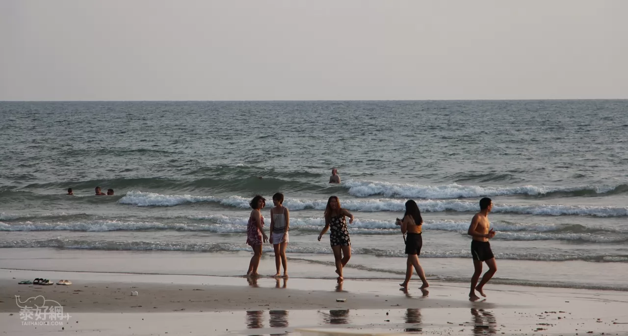 也有很多人沿著長長的沙灘散步,為接下來的晚餐儲存更多的空間。