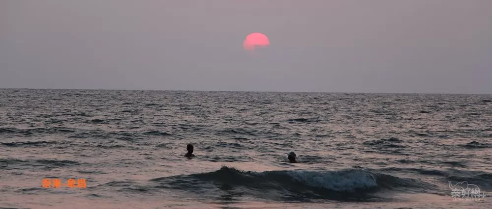 當火紅的夕陽,照在海灘上,一片金色,摻雜隨浪波動的閃閃金光。