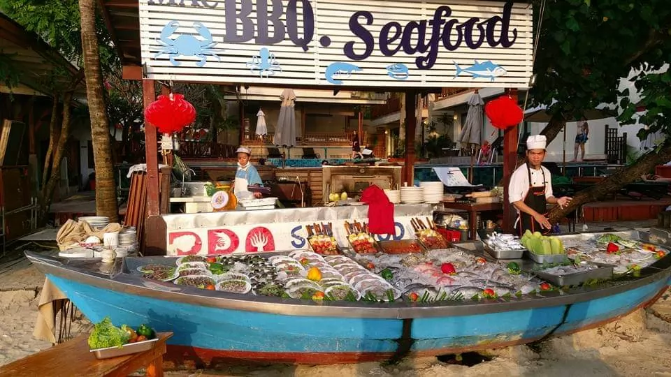海島上少不了新鮮的魚蝦螃蟹,白沙灘上的這些餐廳酒吧,能提供豐盛的海鮮大餐,價格因為是觀光區沒有便宜,但附加價值在海灘上。