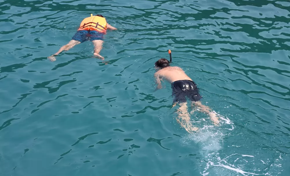 第一次下海浮潛,一定要向教練或者請當地的船員幫忙,學習如何使用面罩和呼吸管。一定要注意帶好面罩,不要讓面罩有空氣進入會很容易進水。呼吸管最好是自己帶的,因為是放入嘴裡的東西,用租的話畢竟是別人用過的,很不衛生。