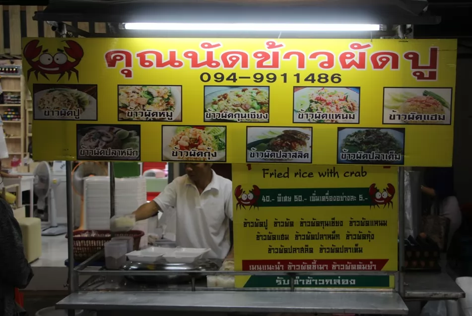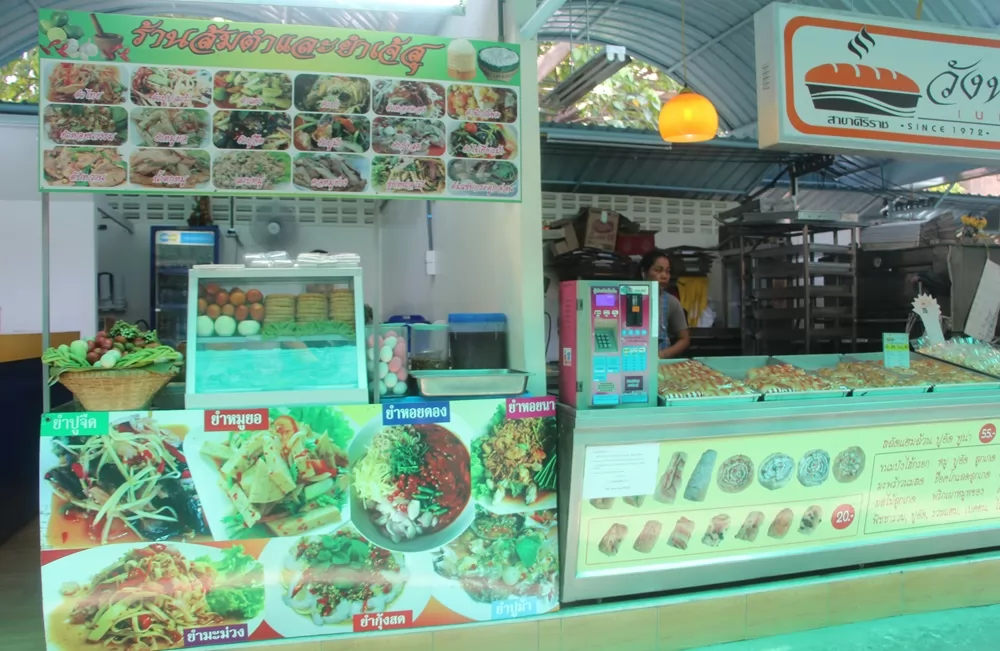 除了各式店鋪外,也有路邊攤、小吃店,最道地的美食,種類也有很多,如炸雞,燒雞,泰式粉麵,炸魚蛋,麵包店,甜點。而且價格合理。
