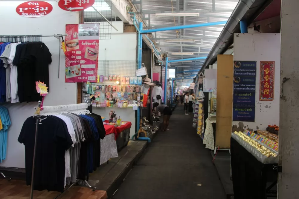 再往內走,就是販賣生活用品的區域,可以買到各種生活日常用品,穿的、用的、化妝品...一應俱全,價格比市區便宜好幾成。上有鐵皮封頂,不用擔心下雨淋濕。