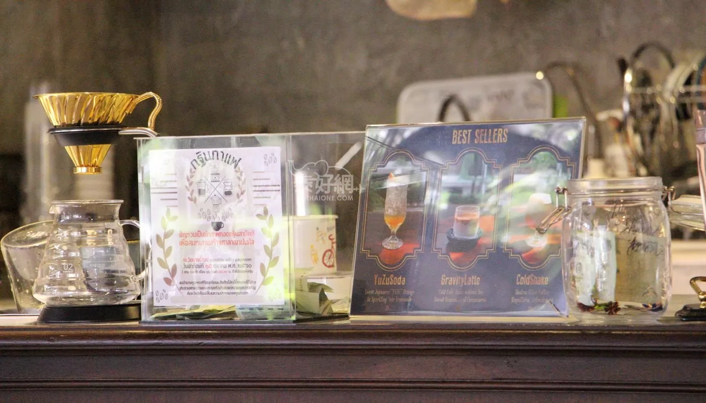 如果不是著重在咖啡,可以選拿鐵,Caramel Latte(冰75銖);或是Gravity Latte by Asama(80銖),厚實濃醇的濃縮咖啡,淋在鮮奶上層,自然形成了裂紋狀,輕輕搖晃杯體,咖啡牛奶漸漸融合,一口喝下去,超棒的口感!有咖啡的香淳又有鮮奶的滑順,很好喝。