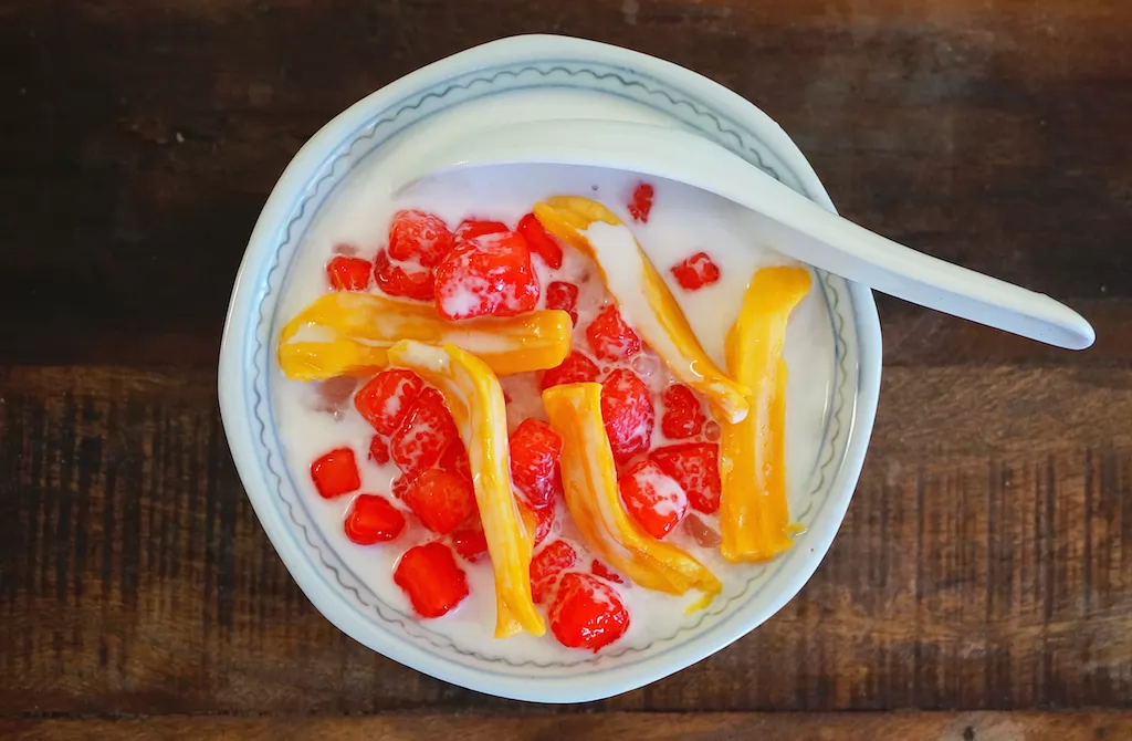 想吃的時候,淋上椰奶和糖漿,再將刨冰盛在上面即可,或放少許菠蘿蜜絲、西米露等,增加口感。