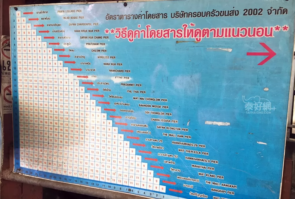 從Asok搭運河交通船到金山寺每人13銖(已漲到14銖),BTS搭1站就要15銖了。