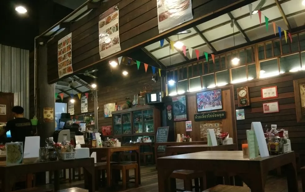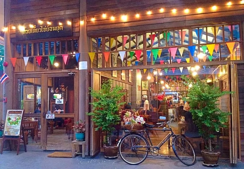這家店已經有很久的歷史了,店也是採取復古的裝潢,泰國傳統的木板牆和倒三角的各色繽紛旗幟,很有懷舊的味道,它主打的就是「老」味道!