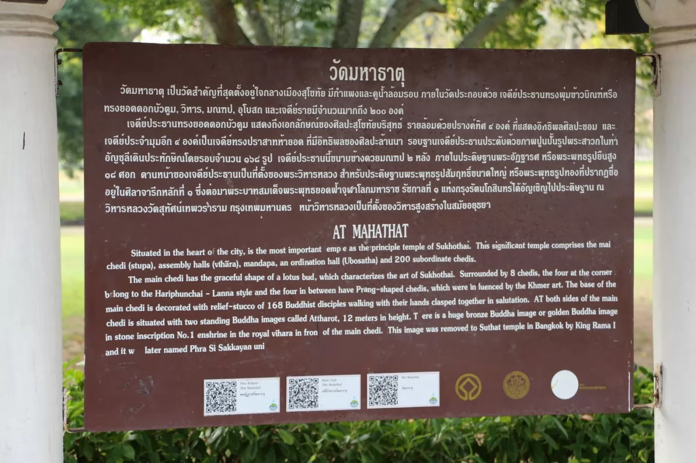 瑪哈泰寺建於13世紀,從印拉第王開始興建,1345年李泰王朝時期完成,是素可泰最大的寺廟,也是整個王國的精神中心。據說藍坎亨未稱帝前曾在此出家。