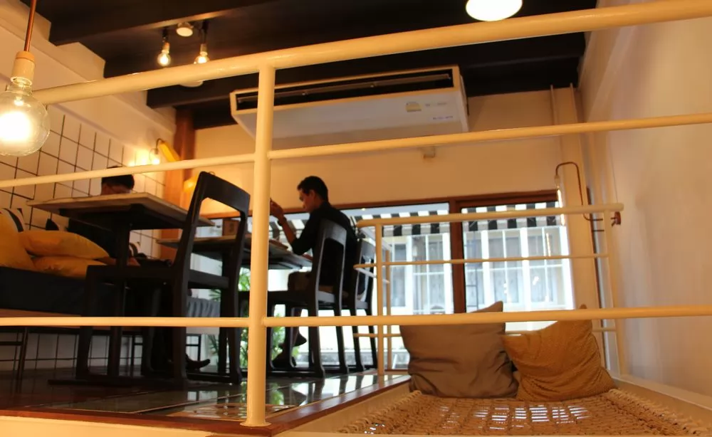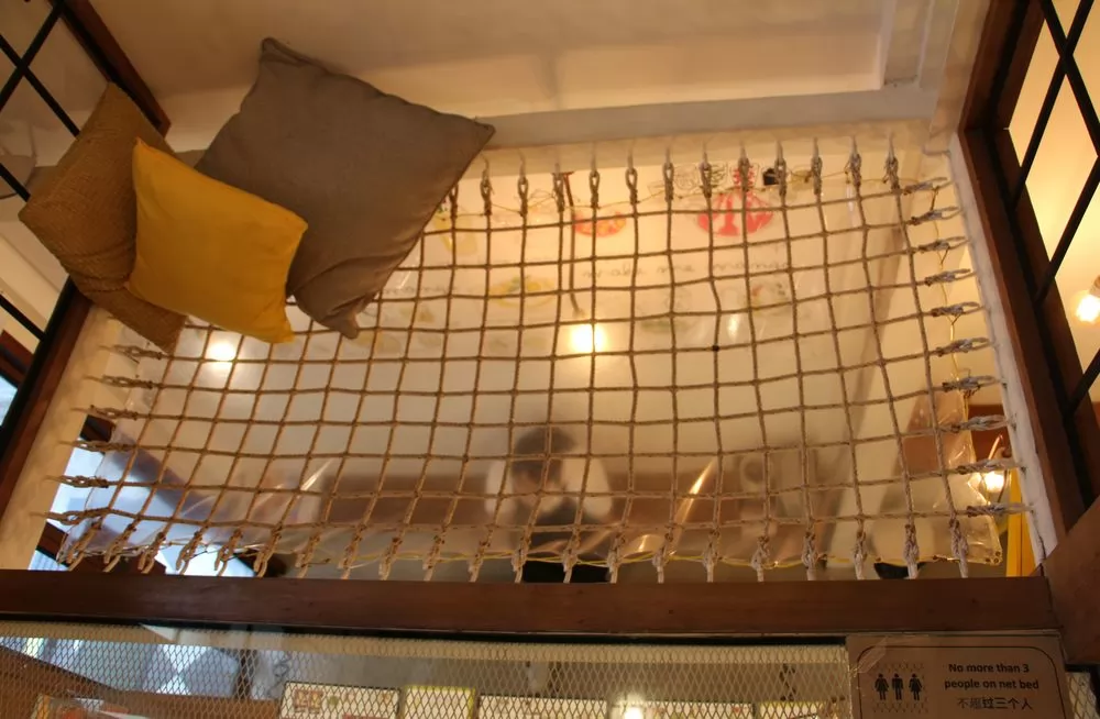 這裡每一處都充滿店主的小心思,拐角處舒適的小沙發、吊床、各種綠植...都讓人像是在家裡一樣隨意舒服。更絕的是還有懸空網子。