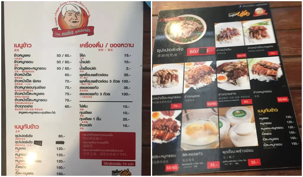 大部份都會點份泰式酸辣豬脊骨(80銖),配上1盤白飯(10銖),如果是兩個人以上來吃,還會加點叉燒(鴨肉、豬肉)飯之類的。
