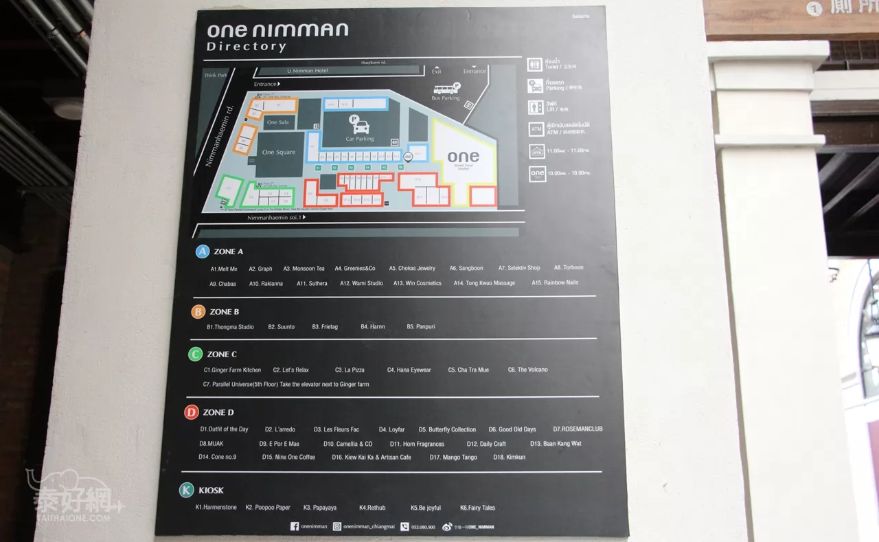尼曼一號,位於尼曼路1巷1號,半室內半室外和磚式的建築細節,似乎令人驚訝!這裡匯聚各式創新的工藝品及優雅的家居用品和室內裝飾用品,迅速地成為清邁的時尚購物之地,可以在這裡拍出美麗的照片、品嚐美味的全天候美食。