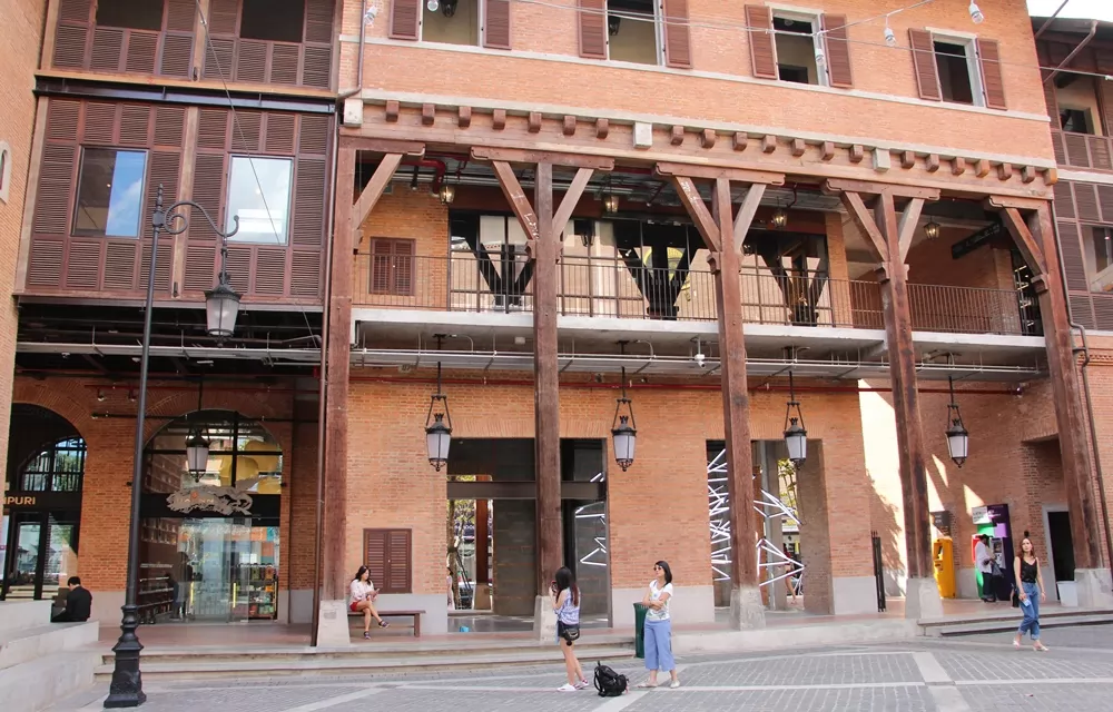 尼曼一號的室外廣場,歐式風格主導,一塊塊土黃色磚塊鑲嵌在一起,與白色相間的高樓,再加上花花草草的零星點綴,有置身在歐洲的錯覺,成為潮流自拍和攝影愛好者喜歡的地方。