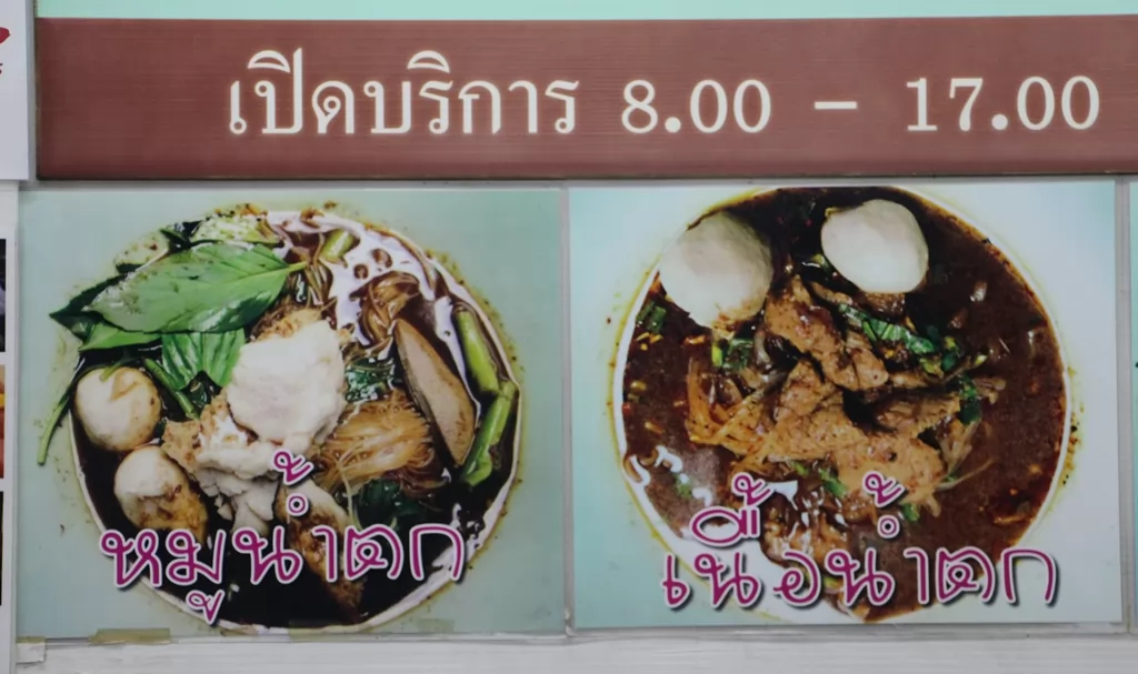 提供多種口味,映豆腐、豬肉瀑布、船粿條(牛、豬肉)等,寬細粿條外,還有雞蛋麵、泡麵、米粉可選,吃出豐富多變的口味。小碗25銖、正常碗40銖。