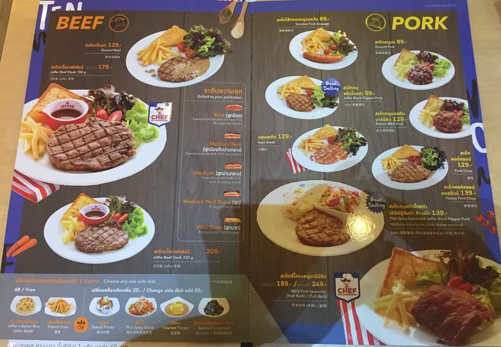 相對於Sizzler,Jeffer Steak的價錢更便宜,89銖就能吃到1份餐點。
