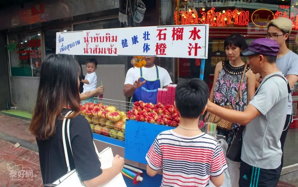 曼谷唐人街路邊攤有多個賣各種鮮榨果汁,一定要喝!畢竟這是很健康的果汁。