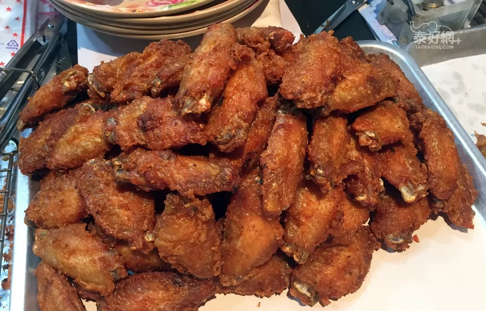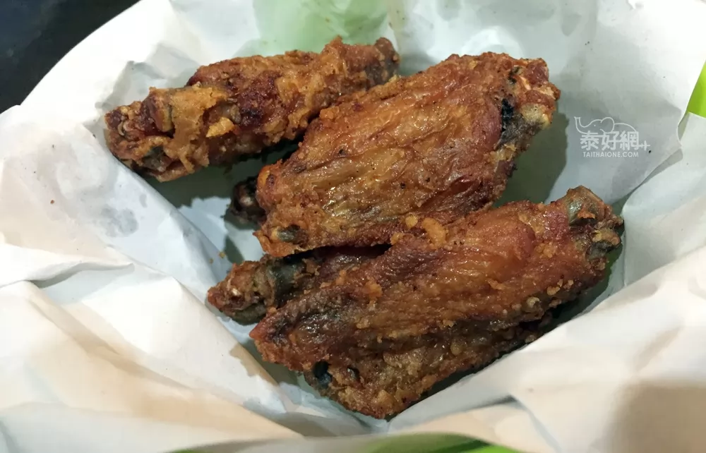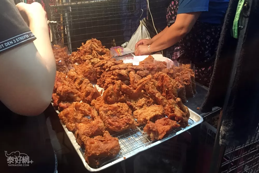 賣的炸雞種類很多,有雞腳(3隻10銖)、小雞翅(3隻20銖)、棒腿(30-35銖)、大雞腿(45銖)、大雞翅(1隻20銖)等,象哥每次都買一堆,因此,記的價格可能會有點誤差,不過,已足以大家說便宜。