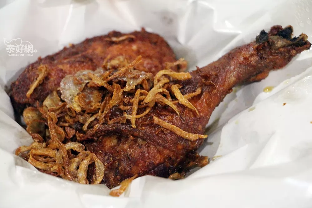 這家的炸雞,看起來普普,沒什麼特色,但吃下去,才知道「不一樣」,因為,在油炸粉裡加入椰奶,吃起來有椰香味,讓人一口接一口地吃下去。