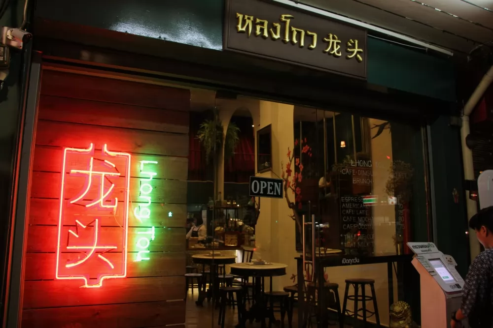 泰國曼谷唐人街的龍頭咖啡(Lhong Tou Cafe/หลงโถว),濃濃中國風的咖啡簡餐屋,階梯的座位很吸晴,爆紅!店前常有人排隊等候。
