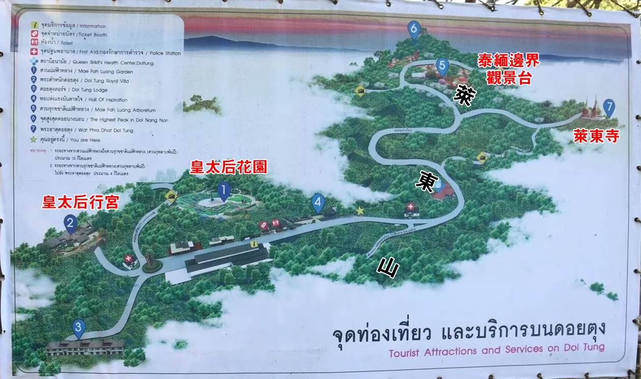 泰北清萊府山清水秀,氣候宜人,想看花,最好的地方當屬萊東(Doi Tung/ดอยตุง)的皇太后行宮和御花園!以絕美的風景和安靜的自然環境,被泰國人喻為「夢幻中的秘密花園」。順道也可以去萊東寺拜佛、觀景檯看美景。
