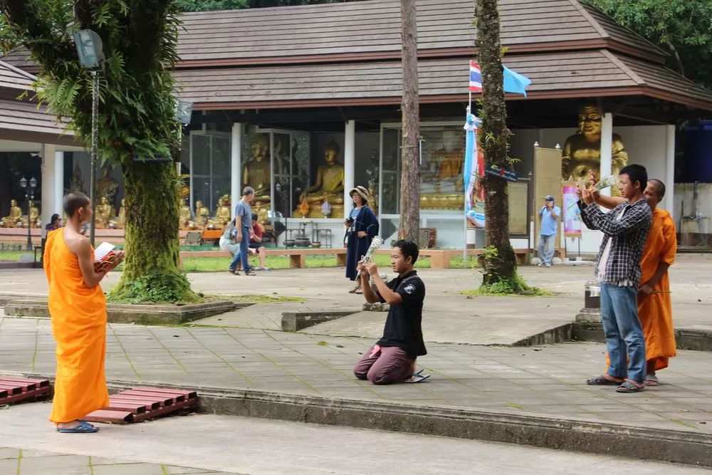 由於塔底埋著舍利,因此有規定,男性才能進入佛塔的內圈繞行(順時針方向),女性只能在外圈繞行。